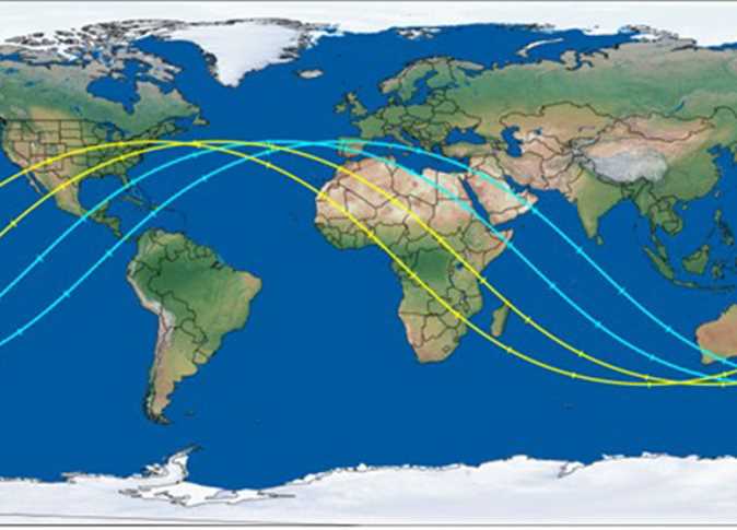 وتشير الصورة لأربعة خطوط رئيسية، تمثّل أماكن على طول المسار الأرضي باللونين الأزرق والأصفر، وهي مناطق معرّضة لسقوط الحطام، بينما الأماكن المحيطة أوالتي لا تُوجد تحت الخط المرسوم مباشرة، فهي غير معرّضة للحطام.