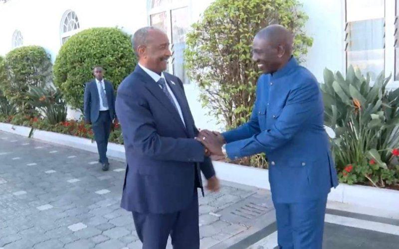 ووصل البرهان إلى كينيا الاثنين، بناء على دعوة من روتو الذي استقبل ضيفه في القصر الرئاسي بالعاصمة الكينية.