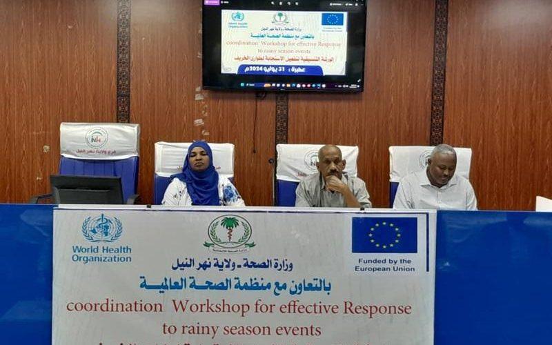 نظمت وزارة الصحة بولاية نهر النيل بالتعاون مع منظمة الصحة العالمية اليوم الورشة التنسيقية لتفعيل الاستجابة لطواريء الخريف وذلك بقاعة التأمين الصحي بعطبرة بحضور شركاء الصحة ومديري النظام الصحي بالمحليات والطوارئ الصحية والادارات العامة بالوزارة.
