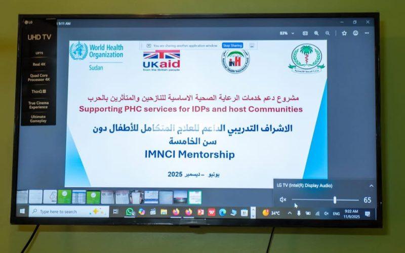 تنطلق خلال الاسبوع الجاري، فرق الإشراف التدريبي الداعم للعلاج المتكامل للأطفال اقل من 5سنوات،مستهدفاً 7 ولايات، وتشمل الخرطوم، الشمالية، القضارف، كسلا، البحر الأحمر، سنار والنيل الأزرق، ضمن مشروع دعم خدمات الرعاية الصحية الأساسية للنازحين والمجتمعات المتأثرة بالحرب بالتعاون مع منظمة الصحة العالمية، وبدعم من العون البريطاني.