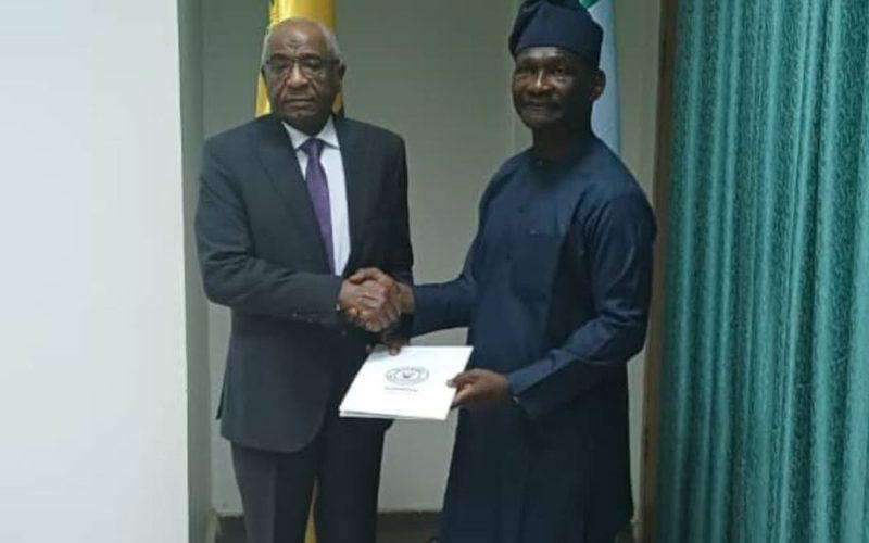قدم السفير محمد عبد العال هارون سفير جمهورية السودان لدى جمهورية نيجيريا الاتحادية امس الخميس نسخة من اوراق اعتماده الى السفير وهاب أكاندى مدير عام ادارة المراسم بوزارة الخارجية النيجيرية تمهيداً لتقديمها الى الرئيس النيجيري بولا أحمد تينوبو وذلك بحضور عدد من مديري إدارات المراسم بالوزراة من الجانب النيجيري ونائب رئيس البعثة بأبوجا.