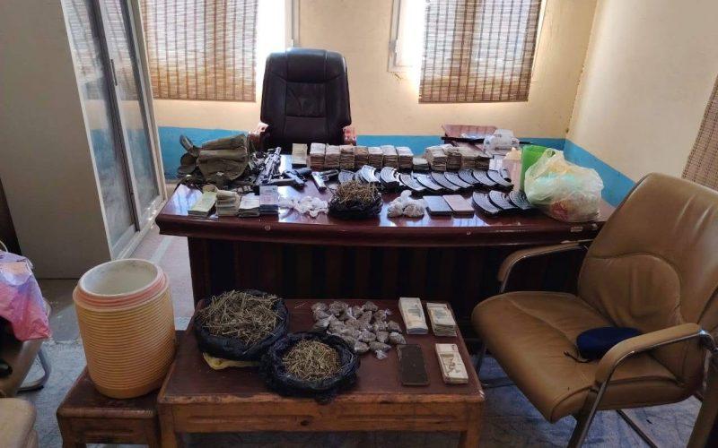 تمكنت الإدارة العامة لمكافحة المخدرات بولاية البحر الأحمر باسناد أمني من القوات الأمنية المشتركة بمحلية سنكات من مداهمة إحدي الأوكار بالمدينة والتي تستغل وكرا للإتجار وترويج المخدرات بأنواعها المختلفة وضبط كميات كبيرة من المخدرات تشمل الشاشمني فلت عدد (5) أكياس معبأة ، وعدد (8) تذكرة آيس كريستال وكمية من أكياس التعبئة و مبلغ مالي يقدر ب(1600000) ، (2) طبنجة ، سلاح ناري كلاشنكوف ولزومها عدد (15) خزنة وعدد (50) طلق ناري ، (2) طلق ناري جيم 3 ، (2 ) هاتف كبير ، دراجة نارية ماركت هوجن 3 ، (8) حقائب وكمية من السلتيب وتوقيف المتهم بمهنية واحترافية عالية بعد عملية مقاومة للقوة المنفذة وتبادل إطلاق النار للحيلولة دون ضبطه وتعود خلفية الضبطية وفقا لمتابعات المكتب الصحفي للشرطة الي توفر معلومة لفريق الميدان بالإدارة تفيد بوجود نشاط إجرامي لاحد مروجي وموزعي المخدرات والسموم وينتحل صفة القوات النظامية علي ضوء ذلك تم تنفيذ عملية مداهمة واسعة النطاق أسفرت عن ضبطه وبحوزته المعروضات بموجب ذلك تم إتخاذ إجراءات قانونية في مواجهته تحت المواد 15/أ والمادة(26) من قانون الأسلحة والزخيرة والمادة (130/20) من القانون الجنائي توطئة لتقديمه للمحاكمة .