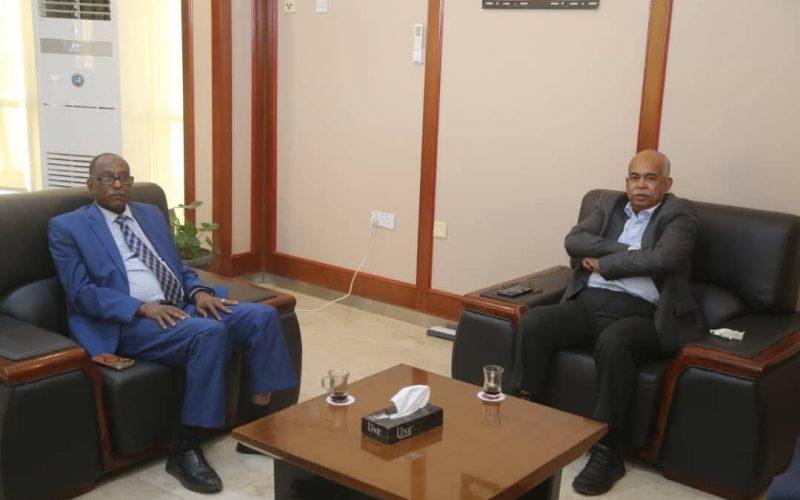 التقي المهندس مستشار المعتصم ابراهيم احمد وزير الطاقة ببروفيسور عماد الدين الأمين الطاهر عرديب مدير جامعة الخرطوم بحضور د. محمود علي احمد وكيل الجامعة .